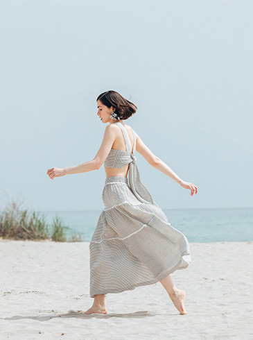 Striped Linen Halter Neck Blouse